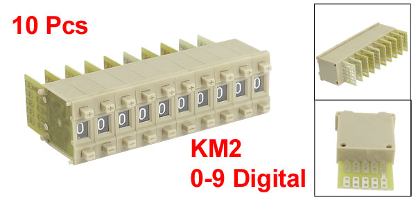 Product Name Pushwheel Switch Model KM2 Number of Unit 1 Digital 0,1,2,3,4,5,6,7,8,9 Output Code BCD Mounting Size(Each) 16 x 6mm/0.6" x 0.24"(W*T) Each Height 29mm/ 1.1'' Total Length 60mm/2.4" Color Gray, Yellow Material Plastic, Electronic Parts Net Weight 13g Package Content 10 x Pushwheel Switch - Reviews