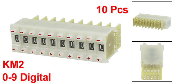 Product Name Pushwheel Switch Model KM2 Number of Unit 1 Digital 0,1,2,3,4,5,6,7,8,9 Output Code BCD Mounting Size(Each) 16 x 6mm/0.6" x 0.24"(W*T) Each Height 29mm/ 1.1'' Total Length 60mm/2.4" Color White, Yellow Material Plastic, Electronic Parts Net Weight 13g Package Content 10 x Pushwheel Switch - Reviews