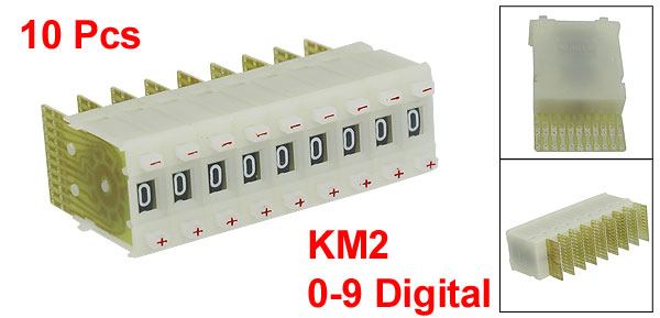 Product Name Pushwheel Switch Model KM1 Number of Unit 1 Digital 0,1,2,3,4,5,6,7,8,9 Code Method Decimal Mounting Size(Each) 22 x 8mm/0.9" x 0.3"(W*T) Each Height 40mm/ 1.6'' Total Length 80mm/3.1" Color White, Yellow Material Plastic, Electronic Parts Net Weight 31g Package Content 10 x Pushwheel Switch - Reviews