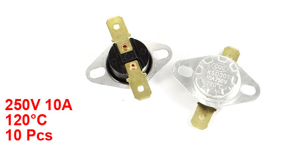10 Pcs KSD301 250V 10A 120 Celsius Normal Close Temperature Controlled Switch