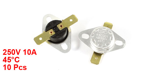 10 Pcs KSD301 250V 10A 45 Celsius Normal Close Temperature Controlled Switch