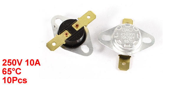 10 Pcs KSD301 250V 10A 65 Celsius Normal Close Temperature Controlled Switch