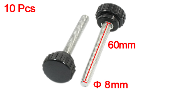 Product Name Knurled Grip Knob Type Screw On Head Diameter 26mm/ 1" Thread Length 60mm/ 2.4" Thread Diameter 8mm/ 0.3" Total Height 75mm/ 2.95" Material Metal & Plastic Color Silver Tone & Black Weight 307g Package Content 10 x Knurled Grip Knob - Reviews