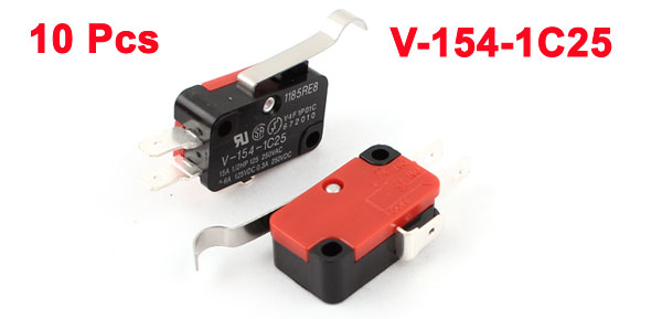 10 Pcs Micro R Hooked Lever Arm Limit Switch SPDT Normally Open/Close V-154-1C25