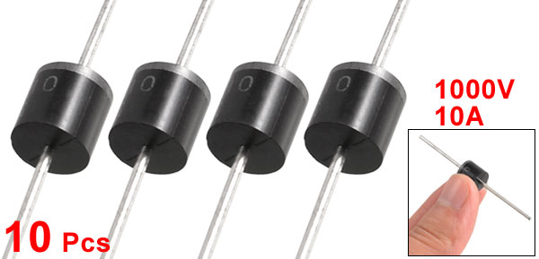 Product Name Rectifier Diode Model 10A10 IF 10A VRRM 1000V VRMS 700V VDC 1000V Lead Diameter 1.2mm / 0.047" Total Dimension 9 x 61mm/ 0.35" x 2.4" (D*L) Color Black, Silver Tone Net Weight 20g Package Content 10 x Rectifier Diodes - Reviews