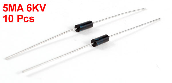 Product Name Rectifier Diode Current 5MA Max Peak Reverse Voltage 6KV Lead Diameter 0.5mm / 0.02" Body Dimension 7 x 2.4mm / 0.28" x 0.09" (H*D) Total Length (Each) 53mm / 2.1" Color Silver Tone, Black Weight 4g Package Content 10 Pcs x Rectifier Diode - Reviews