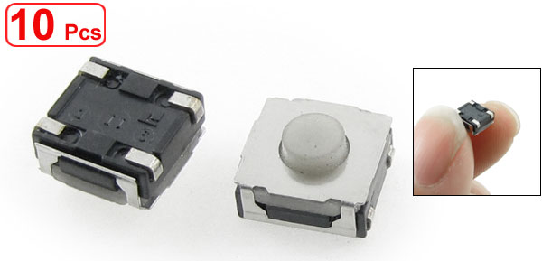 Product Name Tact Switch Contact Type Momentary Contact Mounting Type SMD Dimension 6 x 6 x 3.4mm / 0.24" x 0.24" x 0.13" (L*W*H) Button Dia. 3mm / 0.12" Material Plastic, Metal, Electric Parts Color Black, Silver Tone, White Net Weight 4g Package Content 10 x Tact Switches - Reviews