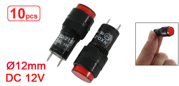 Product Name Indicator Light Working Voltage DC 12V Light Source Neon Lamp Light Color Red Terminals 2 Pins Mounting Hole Diameter 12mm / 0.47" Pin Spacing Pitch 6.25mm / 0.246" Overall Size 14 x 35mm / 0.55" x 1.37"(Max. Dia *L) Weight 23g Package Content 10 Pcs x Indicator Light - Reviews