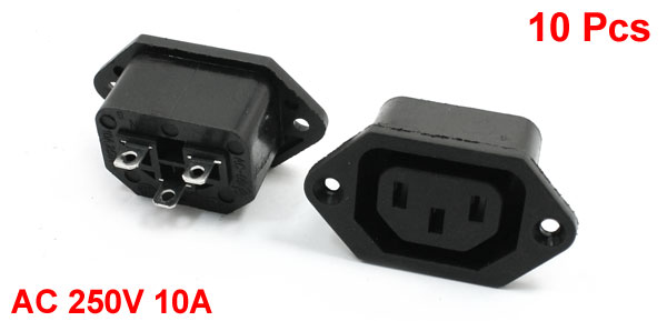 Product Name Power Socket Connector Type IEC320 C13 Power Supply AC 250V 10A Pin Number 3 Total Size 5 x 2 x 2.8cm / 2" x 0.78" x 1.1" (L * W * H) Mount Hole Diameter 3.5mm / 0.14" Mount Hole Distance 4cm / 1.6" Material Plastic, Electronic Parts Color Black, Silver Tone Weight 124g Package Content 10 x Power Sockets - Reviews