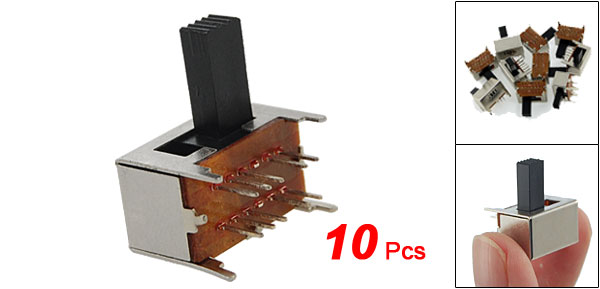10 Pcs Panel PCB 10 Pin 4 Position 2P4T DP4T Slide Switch Side Knob 0.3A 50V DC