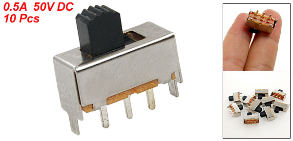 Pins Pitch 4mm / 0.16" Main Body Size(not include pins & knob) 17 x 7.3 x 7.4mm / 0.67" x 0.28" x 0.3"(L * W* H) Switch Total Size 17 x 7.3 x 18mm / 0.67" x 0.28" x 0.7"(L * W* H) Knob Size 5.3 x 3.7 x 6mm / 0.21" x 0.14" x 0.24"(L * W * H) Material(External) Plastic, Metal Main Color Silver Tone, Black Weight 25g Package Content 10 x Slide Switch - Reviews
