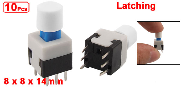 10 Pcs PCB Tact Tactile Push Button Switch Self Lock 8 x 8mm x 14mm 6 Pin w Cap