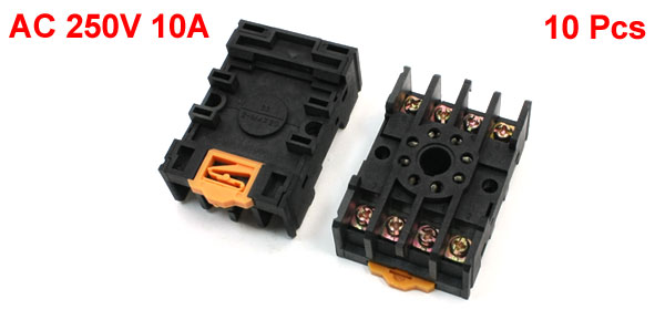 10 Pcs PF-085A 10A 250VAC 8 Pin DIN Rail Mount MK2 Series Relay Socket Base