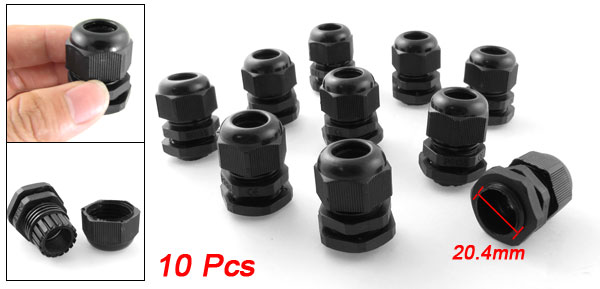 10 Pcs PG13.5 Black Plastic Waterproof Cable Glands