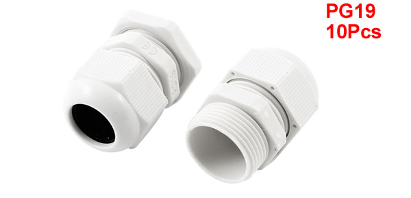 10 Pcs PG19 Off White Plastic Glands Connectors for 12mm to 15mm Cable