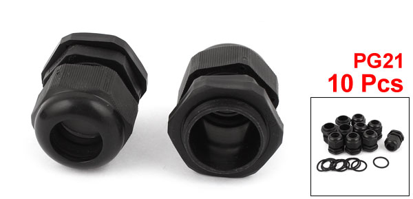 10 Pcs PG21 Black Plastic 13-18mm Dia Waterproof Cable Glands Connectors