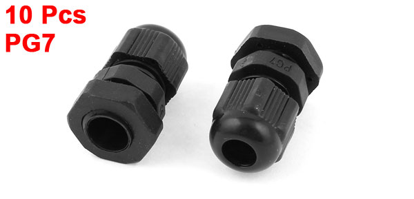 Product Name Cable Gland Model PG7 Cable Range 3.5-6 mm Thread Dia. 11.6 mm / 0.46" Outer Dia. 18mm/0.7" Total Length 30mm / 1.2" Material Plastic Color Black Weight 40g Package Content 10 x Cable Glands - Reviews