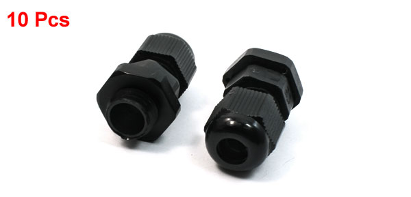 10 Pcs PG7 Black Plastic Waterproof Connectors Cable Gland 11mm Dia Thread