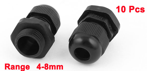 10 Pcs PG9 Black Plastic 4-8mm Dia Waterproof Cable Glands Connectors