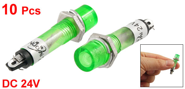 10 Pcs Plastic Case Green Lamp Signal Indicator Pilot Lights DC 24V