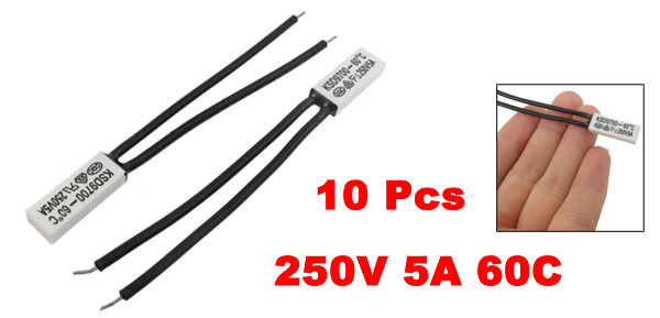 Product Name Temperature Control Switch Model.No KSD9700 Material Plastic Contact NC(Normal Close) Rated Voltage 250V Current 5A Max Rated Disconnection Temperature 60C Color Black, White Cable Length 6.5cm/ 2.6" Head Dimension 21 x 8 x 4mm/0.83" x 0.31" x 0.16"(L*W*T) Net Weight 25g Package Content 10 x Temperature Control Switch - Reviews