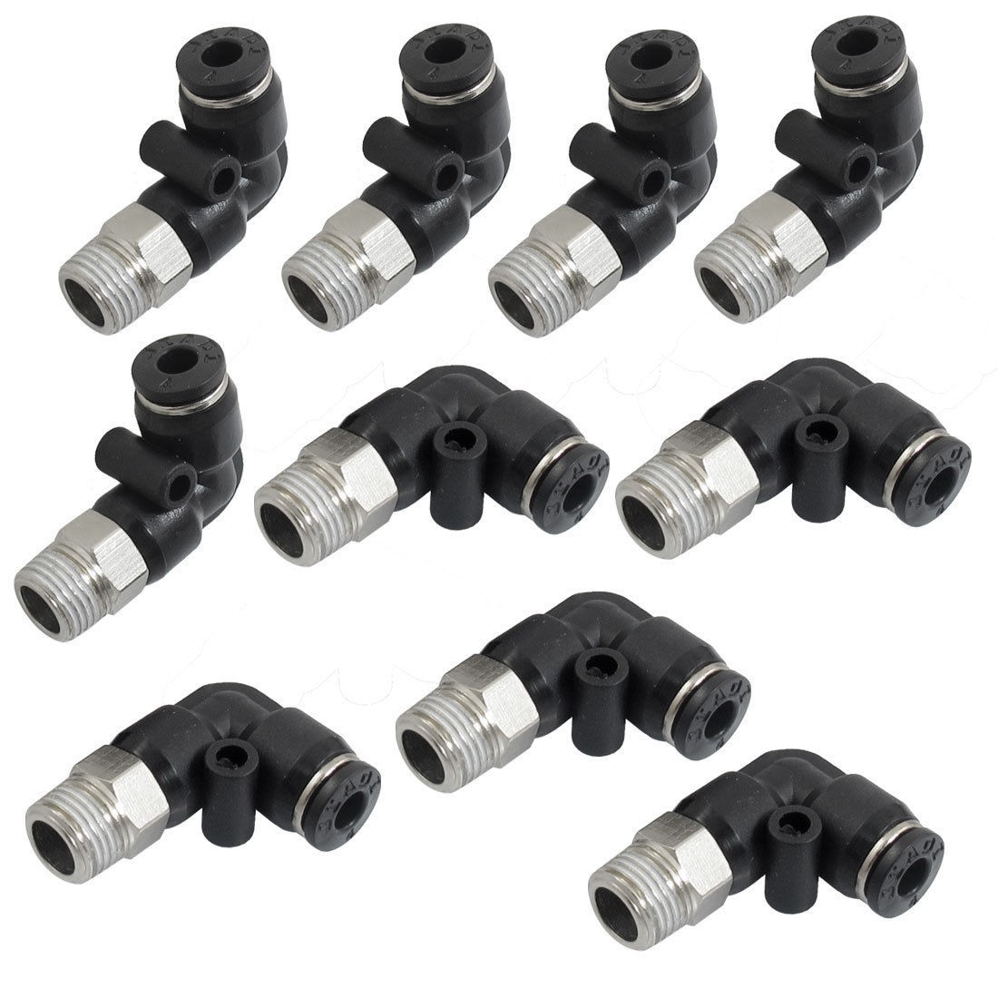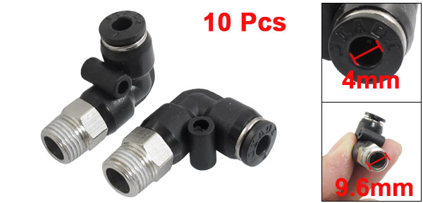 10 Pcs Pneumetic 4mm to 1/8" PT Male Thread One Touch Elbow Quick Fittings