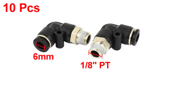10 Pcs Pneumetic 6mm to 1/8" PT Male Thread One Touch Elbow Quick Fittings
