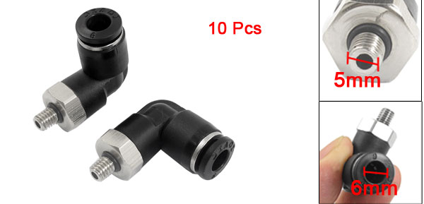 10 Pcs Pneumetic 6mm to 5mm Male Thread One Touch Elbow Quick Fittings