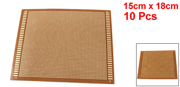 Product Name Univeral PCB Board Pin Number 68 Hole Dia 1mm Hole Pitch 2.54mm Total Size 15 x 18cm/5.9" x 7.1"(L*W) Mounting Hole Dia. 2.5mm/0.1" Thickness 1.2mm/0.047" Materials PCB, Plastic, Glass Fiber Main Color Brown Weight 541g Package Content 10Pcs x Univeral PCB Board - Reviews