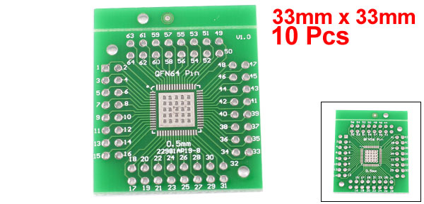 Product Name Adapter Plate Pin Number 56,64 Pin Pitch 0.5mm/0.02" Fixing Hole Dia 1mm/0.04" Body Size 33 x 33mm/1.3" x 1.3"(L*W) Material Plastic, Electronic Part Main Color Green Net Weight 41g Package Content 10Pcs x Adapter Plate - Reviews