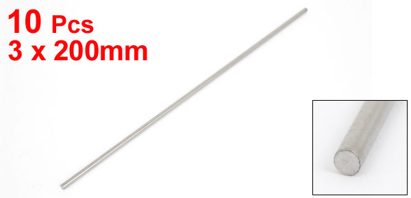 Product Name Stainless Steel Round Rod for DIY RC Model Size 3 x 200mm /0.12" x 7.9"(D*L) Material Stainless Steel Color Silver Tone Weight 112g Package Content 10 Pcs x Round Rods - Reviews