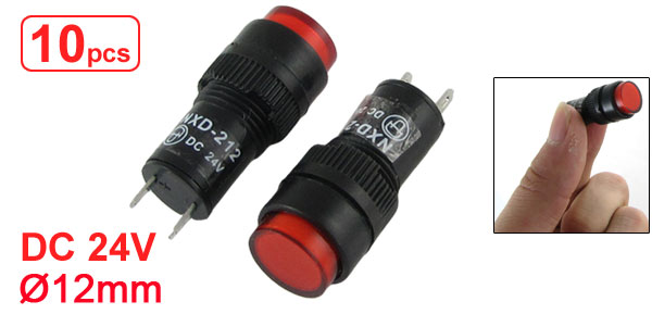 Product Name Indicator Light Working Voltage DC 24V Light Source Neon Lamp Light Color Red Terminals 2 Pins Mounting Hole Diameter 12mm / 0.47" Pin Spacing Pitch 6.25mm / 0.246" Overall Size 14 x 35mm / 0.55" x 1.37"(Max. Dia *L) Weight 23g Package Content 10 Pcs x Indicator Light - Reviews