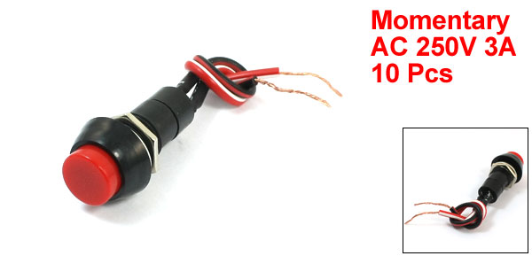 Item Name Push Button Switch Contact Type Momentary SPST Working Voltage 250VAC 3A Button Color Red Mounting Thread Diameter 11.5mm / 0.45" Button Cap Dia 12mm/0.47" Cable Length 10cm/3.9" Switch Size 34 x 18mm/1.34" x 0.7"(H*D) Material Plastic, Electronic Parts Weight 60g Package Content 10 Pcs x Push Button Switch - Reviews