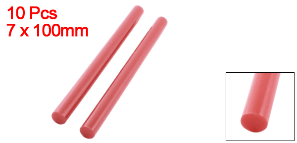 Details10 Pcs Red Hot Melt Glue Gun Adhesive Sticks 7mm x 100mm for Crafting Models  Product Name Hot Melt Glue Adhesive Stick Material EVA Size 7 x 100mm / 0.27" x 4"(D*L) Color Red Weight 46g Package Content 10 x Hot Melt Glue Adhesive Sticks