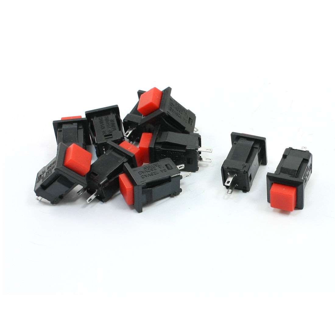 10 Pcs Red Square Head Latching SPST 2 Pin Push Button Switch 1A 250VAC