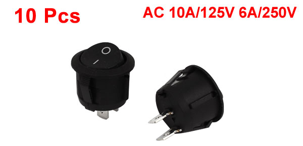 10 Pcs Round Black 2 Pin SPST ON-OFF Rocker Switch AC 10A/125V 6A/250V