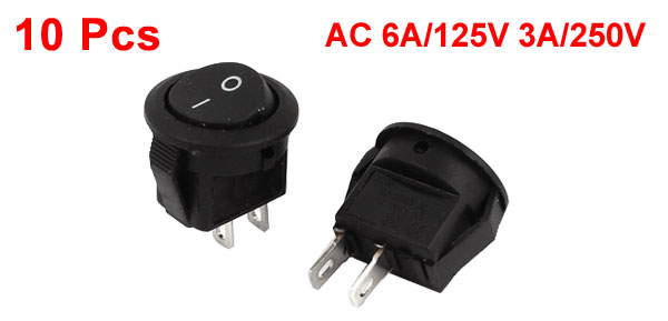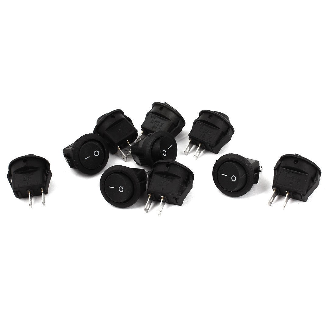 10 Pcs Round Black 2 Pin SPST ON-OFF Rocker Switch AC 6A/125V 3A/250V