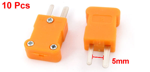 Product Name Thermocouple Plug Type K Type Material Plastic, Metal Main Color Orange Socket Size 35 x 18 x 10mm/ 1.4" x 0.7" x 0.39" (L*W*T) Pin Spacing 5mm/ 0.2" Weight 36g Package Content 10 x Thermocouple Plug - Reviews