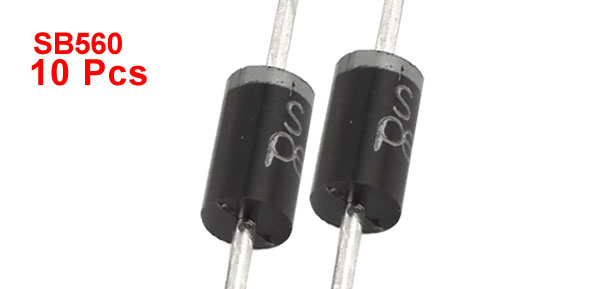 Details10 Pcs SB560 DO-27 Schottky Barrier Rectifier Diodes 5A 60V  Product Name Schottky Barrier Rectifier Diodes Model SB560 Package Type DO-27 Maximum Repetitive Peak Reverse Voltage 60V Maximum Average Forward Rectified Current 5A Body Size 9 x 5mm / 0.35" x 0.2"(L*D) Length 60mm Color Black, Silver Tone Weight 11g Package Content 10 x Fast Recover Rectifier Diodes