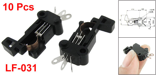 Product Name Leaf Switch Model No. LF-031 Contact 1P2T Rated Voltage DC 30V 0.4A Withstand Voltage AC 150V for 1 Minute Contact Resistance 30M ohm Max. at 1A 5V DC Insulation Resistance 100M ohm Max. at 500V DC Color Black, Silver Tone Material Plastic, Metal Size As picture shown Weight 10g Package 10 x Leaf Switch - Reviews