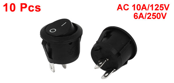 10 Pcs Snap In 2 Terminals SPST ON-OFF Round Rocker Switch AC 10A/125V 6A/250V