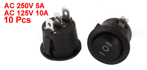 10 Pcs SPDT 3-Terminals Boat Rocker Switch AC 250V 5A 125V 10A