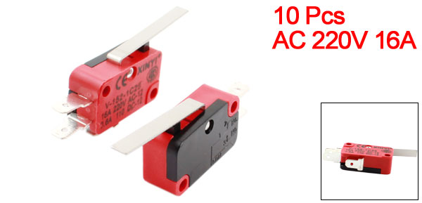 Product Name Micro Switch Model V-152-1C25 Contact Type SPDT(1NO 1NC) Pins 3 Pin Actuator Type Long Straight Hinge Lever Rating AC 220V 16A Body Size(Each) 28 x 16 x10mm/1.1" x 0.63" x 0.4"(L*W*T) Level Size 30 x 5mm/1.2" x 0.2"(L*W) Material Plastic, Metal Switch Color Black, Red Net Weight 68g Package Content 10 Pcs x Micro Switch - Reviews