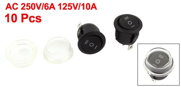 Main Color Black, Clear Brand DMiotech Country of Manufacture CHINA Model KCD1 Contact SPDT ON-OFF-ON Material Plastic, Metal Total Size 24 x 26mm / 0.94" x 1" (D*H) Product Name Rocker Switch Pins 3 Net Weight 67g Package Content 10 x Rocker Switch, 10 x Waterproof Cover Mounting Size 20mm / 0.8" Rating AC 250V/6A 125V/10A - Reviews
