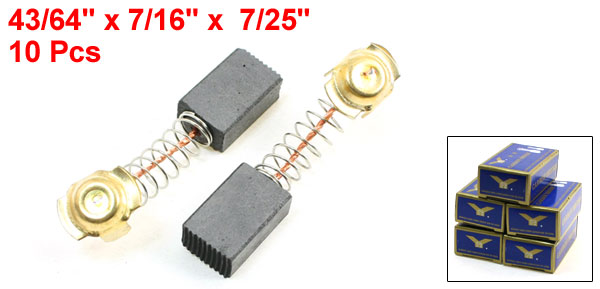 Product Name Motor Carbon Brush Carbon Brush Size 17 x 11 x 7mm/43/64" x 7/16" x 7/25"(L * W * H) Lead Wire Length(Approx) 3.3cm/1.3" Net Weight 52g Package Content 10 x Motor Carbon Brush - Reviews