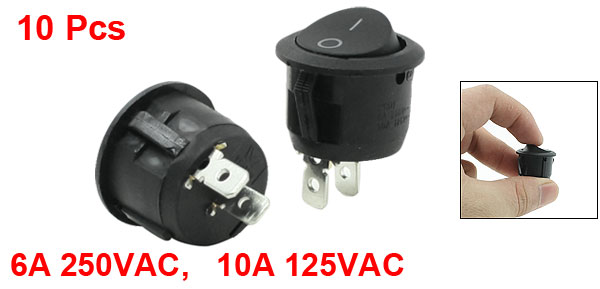10 Pcs SPST I/O ON/OFF Round 2 Position Rocker Switch 6A 250VAC 10A 125VAC