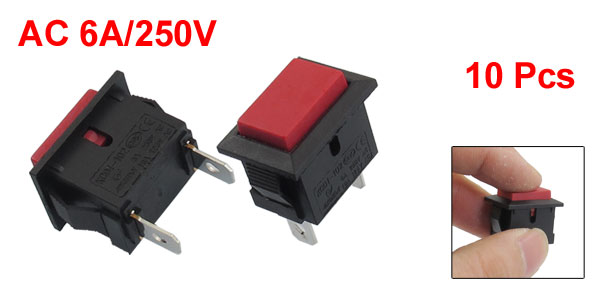 10 Pcs SPST Red Button Momentary Off Rocker Switch AC 250V/6A 125V/10A