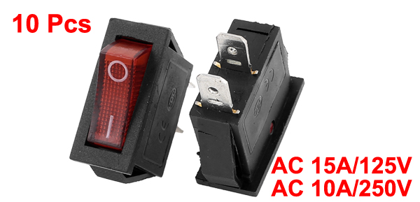 10 Pcs SPST Red Neon Light On/Off Rocker Switch AC 15A/125V 10A/250V