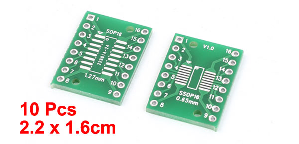 Product Name PCB Adapter Converter Type SSOP16 SOP16 0.65mm 1.27mm to DIP 16Pin 2.54mm Pitch Size 2.2 x 1.6cm / 0.69" x 0..63"(L*W) Color Green Weight 10g Package Content 10 x PCB Adapter Converter - Reviews