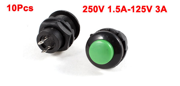 10 Pcs Thread Green Cap SPST Momentary Type Push Button Switch OFF-ON